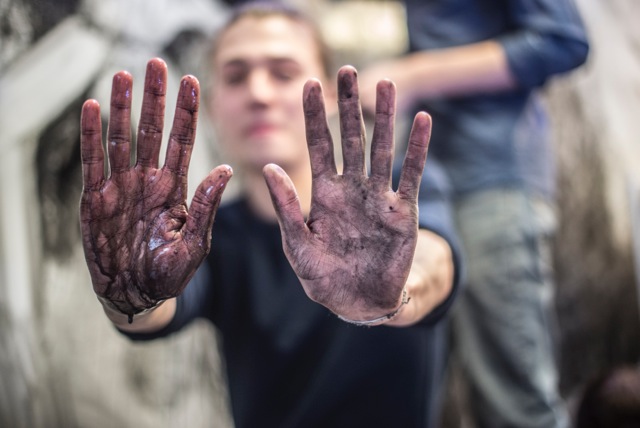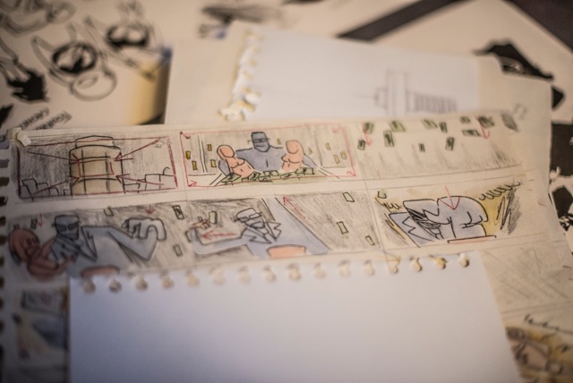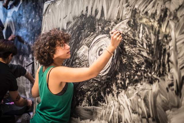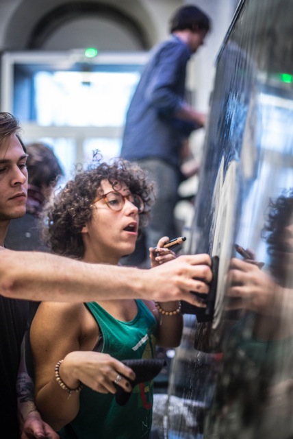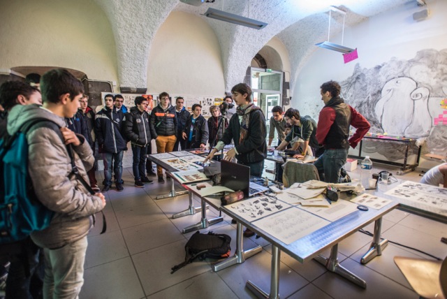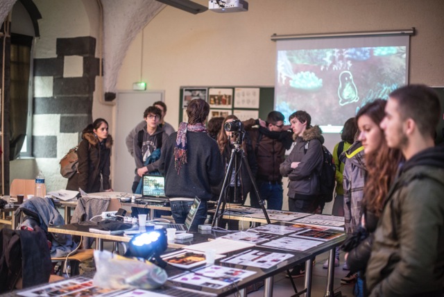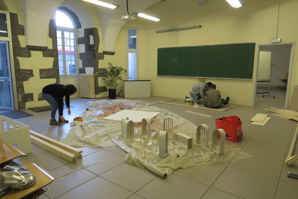 Mise en place d’un décor pour le tournage d’une animation géante par le DMA cinéma d’animation du Lycée Descartes de Cournon.